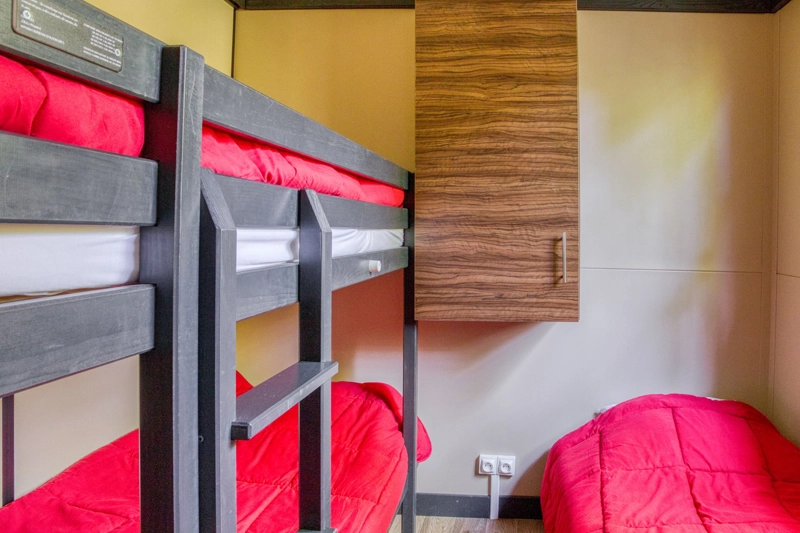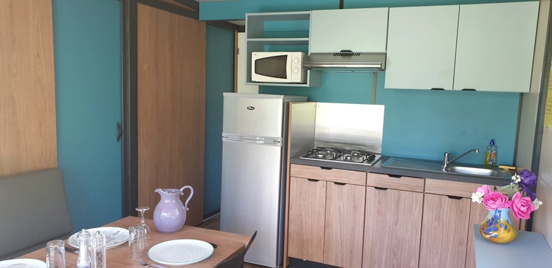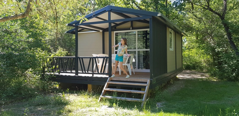 huisje Aangeboden door Les Rives de l'Aygues, een camping vlakbij de rivier in de regio Drôme Provençale. Deze accommodatie van 25 m² beschikt over twee aparte slaapkamers: één met een tweepersoonsbed en de andere met drie eenpersoonsbedden, waarvan twee stapelbedden – perfect voor kinderen. Het chalet is voorzien van een volledig uitgeruste kitchenette, airconditioning en een badkamer met douche. Het toilet is apart. Bovendien heeft het chalet een charmant overdekt terras, ideaal om te genieten van de natuurlijke omgeving van de camping. Huisdieren zijn welkom, onder bepaalde voorwaarden.