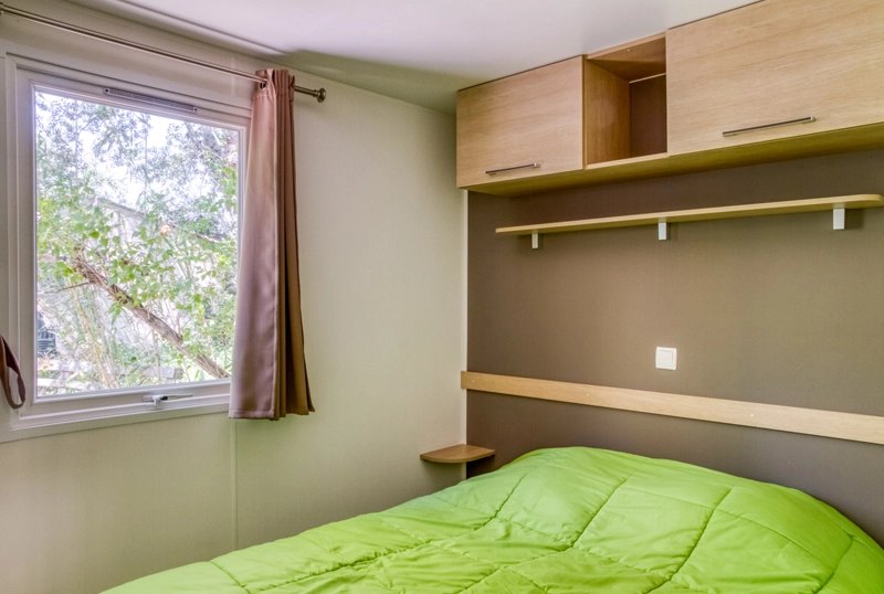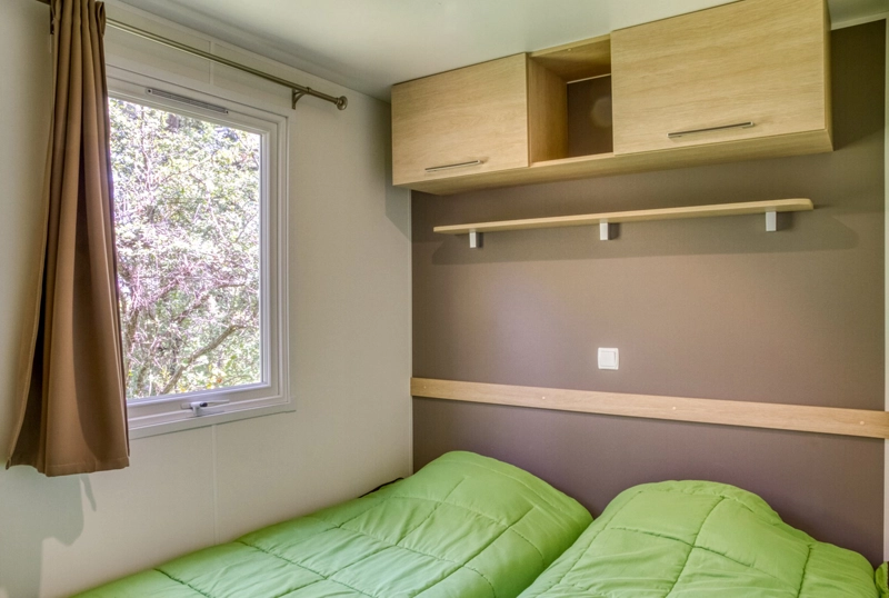stacaravan van 33 m² aan, geschikt voor 6 personen. Deze accommodatie beschikt over drie aparte slaapkamers: één met een tweepersoonsbed en de andere twee met elk twee eenpersoonsbedden. De stacaravan is voorzien van een volledig uitgeruste kitchenette met kookplaat, koelkast met vriesvak, airconditioning en magnetron. De badkamer heeft een douche en er is een apart toilet. Om optimaal te genieten van uw rustige kampeerervaring in de Drôme Provençale, beschikt de stacaravan met 3 slaapkamers over een halfoverdekt terras met tuinmeubilair. Boek nu!