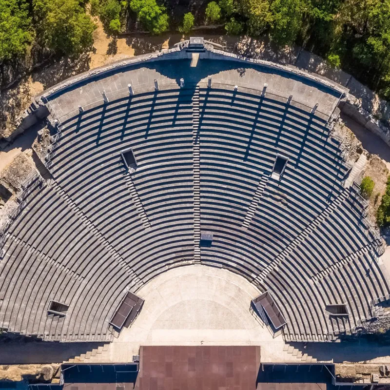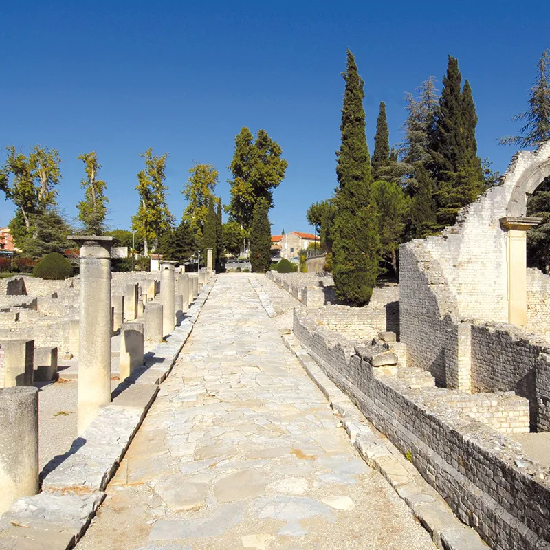De twee belangrijkste archeologische sites, Puymin en La Villasse, tonen het belang van de voormalige Romeinse stad. U ontdekt er mozaïeken, antieke straten en opmerkelijk goed bewaarde stedelijke structuren.Het antieke theater, dat vandaag nog steeds in gebruik is, biedt een spectaculair uitzicht op de Mont Ventoux en versterkt de band tussen historisch erfgoed en Provençaalse landschappen.